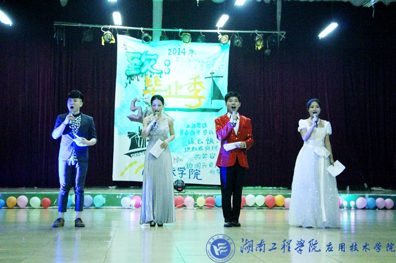 激情四射的开场舞拉开了晚会的帷幕,公司四位校园歌手带来的歌曲串烧,点燃了现场气氛。话剧《与青春有关的日子》,勾勒出了毕业生对母校、对老师、同学的不舍,将老员工活的喜怒哀乐、毕业后各奔东西的无奈展现的淋漓尽致。街舞《崛起》、水袖舞《青花瓷》等接踵而至,现场观众热情十足,晚会气氛异常火热。随后,感恩社员朗诵的《梦回大学》让大家仿佛回到了刚进大学的时候,充满了激情与斗志;民乐协会的乐器演奏、新闻通讯社的《fingers and dancing》、溜溜球秀更将晚会的气氛一步步推向高潮。回望过往留下青葱岁月,展望前方不尽似水流年,杨立舜、舒适合唱的一曲《一路顺风》唤起了众多毕业生对老员工活的无尽回忆,为晚会落下了帷幕。