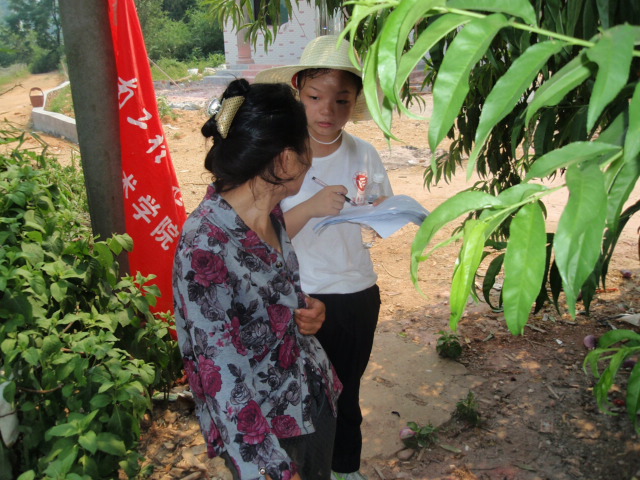 农村居民住处分散,这给组员的调查工作增添了一定难度和挑战,但大家依然精神抖擞,没有丝毫懈怠。一路上志愿者对受访者礼貌发问,虽然接受采访和调查的群众朴实热情,认真的对待我们的调研和采访,对石井铺村的热爱之情溢于言表。