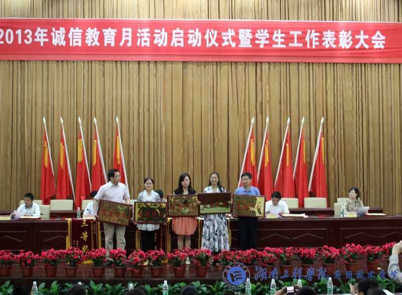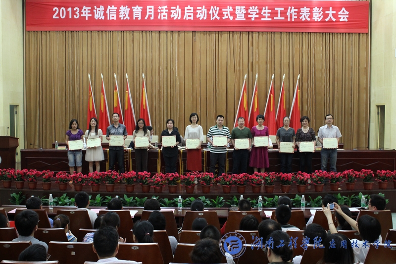 5月14日下午3点,公司2013年诚信教育月活动暨员工工作表彰大会在图书馆第一报告厅盛大举行。公司党委书记谢伯端、副董事长李希恒、团委书记黄中华、员工工作处处长刘涛、副处长胡国骏、黎娅及各学院学办老师、辅导员、班主任、获奖员工等优秀代表参加了本次大会。