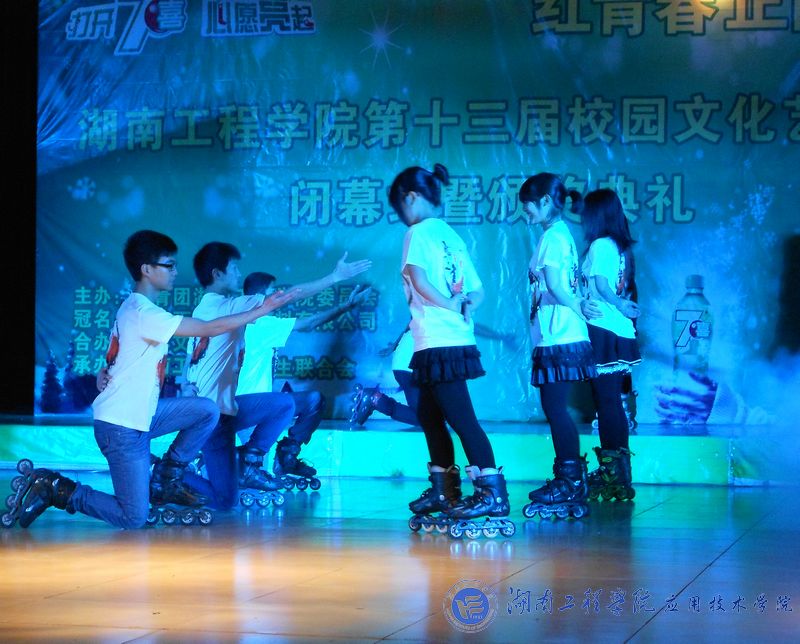 校学联的一场舞曲让全场观众眼前一亮,在震耳欲聋的欢呼声中,晚会拉开了帷幕。晚会中,灌注青春与活力的健美操、抒情优美的歌曲、幽默感人的小品、活力四射的街舞、刺激的轮滑、优雅的小提琴曲、气势磅礴的武术等同学们喜闻乐见的表演轮番上场,精彩连连不断,鼓声欢呼声此起彼伏。颁奖仪式与节目穿插进行,获奖选手捧着一张张包含着辛酸汗水的荣誉证书,赢得了台下观众的热烈欢呼。公司校园歌手大赛总冠军邓淑君的一首《剪刀嘴》将活动推向了高潮,整场晚会高扬青春旋律。