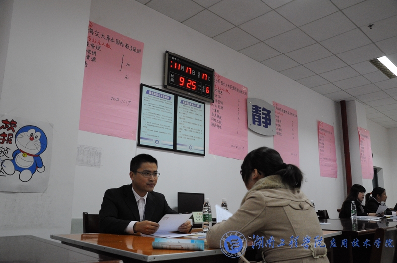 见面会还未开始,应聘者便手持简历早早来到现场,积极与招聘人员进行交流。招聘人员对公司准毕业生的个人素质和综合能力给予了充分的肯定,并告诫同学们一定要做好人生的定位,有目标才有方向的择业。