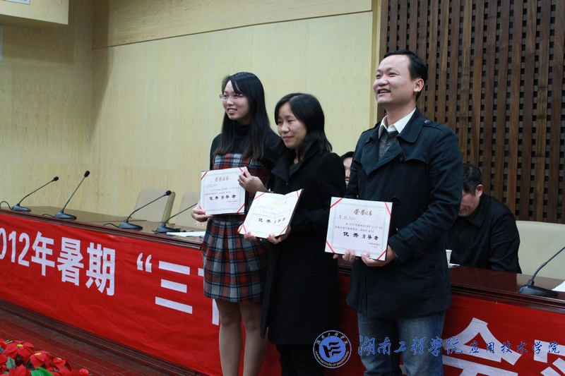 10月30日晚,必赢242net2012年暑假“三下乡”社会实践活动表彰大会在图书馆第二报告大厅隆重举行,公司获得了“优秀组织奖”的光荣称号,蒋淑亚和王尔奇老师被评为优秀指导老师,毛婷、袁小庆、安雨等11位同学受到表彰。副董事长李希恒、团委书记黄中华等出席了表彰大会。