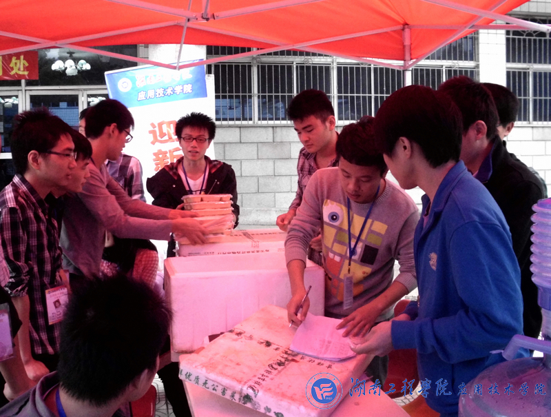 南校区的迎新接待点设在实验楼,当新生们心中满怀着憧憬与向往,踏着初秋的步伐,披着朝阳的光辉走进校园时,每位新生从到校到报名结束都会有一位志愿者全程陪同和指导,负责其报名,付款,领取生活用品,填入住信息,直到最后带到宿舍。有些热情的志愿者会把自己的联系方式留给新生,以便日后加强联系,相互帮助,真可谓是服务全方位,沟通零距离。