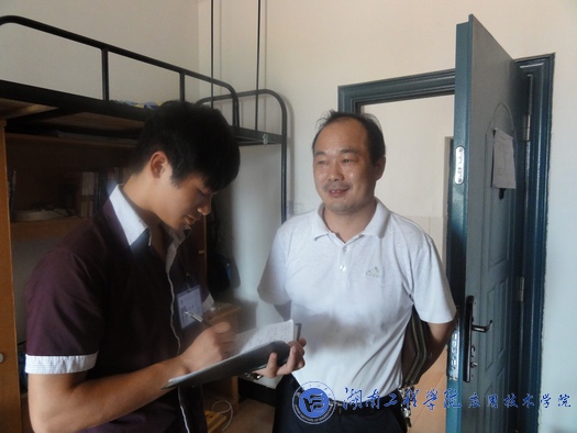 9月15日下午4:00,公司经理李光中、副经理文山东在员工工作部主任单化任的陪同下,先后到主校区滨江公寓、亲民公寓就专职班主任办公场地、员工宿舍的环境与安全等问题进行调研,并与有关同学进行了交流与沟通。