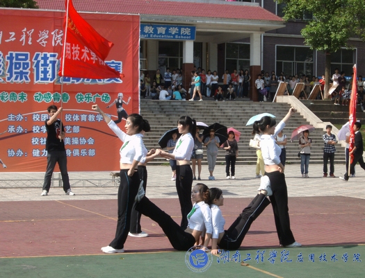 5月17日下午2:30,“健力美杯”必赢242net2011健美操街舞大赛在主校区(北)学海花园精彩上演。此次比赛由校团委、校体育教学部主办,校学联文艺部、校社联健美操协会承办,健力美健美操协会协办。湘潭市体育局副局长冯建平一行在校团委书记张小刚、校体育教学部部长许毓成等领导、老师的陪同下观看了比赛。