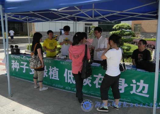 此次活动的参与方式十分简单,只需通过手机进行微博报名绿植领养或编辑短信发表绿色宣言或者绿色梦想,即可免费获得精心准备的波斯菊种子和花盆一个。据了解,波斯菊每盆每年可吸收二氧化碳165克,释放氧气70克,此次活动计划在公司发放1000颗种子。大家在领取种子的时候,还可以从现场的微博大屏幕上看到自己的绿色宣言。天气虽然炎热,却抵不过同学们“种子变绿植”的热情,过往的同学们踊跃参与活动,大家都对植物种子的栽培产生了浓厚的兴趣,兴致勃勃的讨论着植物的培育和护理,现场气氛十分活跃。活动进行到下午时,花盆已经全部送完,据工作人员初步统计,已经发放了800多份种子,由于时间的关系,还有一百多份种子未能送出,但是本次活动取得的成效是毋庸置疑的,记者私下算了一个小账:只算800颗种子,那一年可以吸收二氧化碳132000克,释放氧气56000克。
