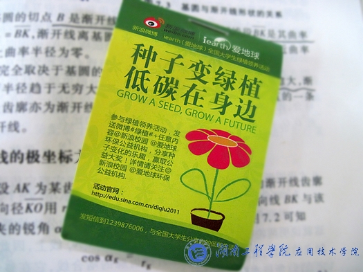 5月18日,由iearth——爱地球环保公益机构、新浪微博校园赞助,校团委主办,校环保协会承办的全国老员工绿植领养活动“pay it forword——把爱传下去”走进公司,活动分别在北校区学海花园、新校区教学楼前坪以及南校区七栋前坪热烈展开。此次活动从5月17日起,为期三天,面向公司全体师生,旨在唤起大家的环境保护意识,提倡低碳生活。