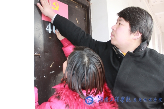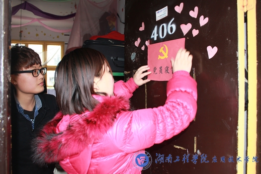 为进一步强化党员的责任意识,充分发挥员工党员在寝室中的模范带头作用,公司把党建工作做到基层,实行党员寝室挂牌制度。 3月25日中午,公司团总支书记缪智文老师及辅导员唐喜梅老师、陈欢老师为主校区北院的员工党员寝室挂牌。缪老师强调,每一名员工党员都要充分发挥“一名党员,一面旗帜”的先锋模范作用,主动接受同学监督,进一步增强党员意识,要用自己的实际行动来带领大家共同进步,共创文明寝室。在随后的走访过程中,老师们重点了解了员工党员在寝室的学习、生活情况。(记者:申梦芸;摄影:纪青)