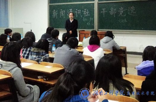 12月2日晚7:00,公司员工新闻通讯社换届选举大会在新校区D-101举行,副经理文山东、办公室主任张宏、团总支书记缪智文以及员工会主席李靖靖、团总支书记助理周杰同学担任了本次选举大会的评委,员工新闻通讯社全体干部及新老干事准时出席,为当晚的竞选者加油。