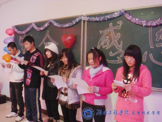 此次团日活动各个班级都准备得非常充分,节目内容丰富多彩:有突出主题的深情朗诵、演讲、歌曲与话剧表演,也有增进同学之间友谊的游戏与娱乐节目。“感恩的心,感谢有你,伴我一生,让我有勇气做我自己... ...”记者追溯着歌声的源头,来到了生物0981班和英语0981班的教室,讲台上有几位同学正手捧蜡烛,用心唱着《感恩的心》,星星点点的光亮仿佛照亮了每个人的心灵,点燃了大家内心最真挚的感恩之心,而他们动情的歌声也感染了在座的每一位同学,伴随着他们的节奏,大家唱出了内心深处的那份感恩情,顿时,响亮的歌声响遍了整栋教学楼,也在了每个人的心中激荡。英语1082班的《手牵手》的手语表演,讲台上三位小女生娴熟的动作与感情的真情流露也深深地打动了每一位同学的心,她们在用歌声和表演告诉着大家:手牵手,我的朋友,爱永远在你左右,不要恐惧,不要放弃,这一切都将度过,因为有你和我,才有明天的彩虹。