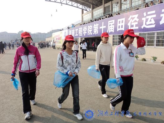 赛事进行得如火如荼,而赛场周围总有一列飘着绿色丝带的整齐队伍,在维护赛场的卫生。记者采访了这支队伍的负责人——公司青年志愿者中心的副主任许迈兮同学,她就本次青年志愿者中心的工作回答了记者的提问。在交谈中记者了解到:此次青年志愿者中心在新体育场设立了供水出和失物招领的站点,还在公司服务点安排了志愿者进行服务工作。她还说到“飘扬的绿丝带”是由公司青年志愿者中心组成的爱心环卫组,但是我们不仅仅是为公司服务,而是定时绕整个场馆清理现场垃圾,爱心环保组我们是第一个!在深入了解中,我们得知因"绿丝带"的工作,各院系也纷纷效仿。下午会场上就多出很多来自各个院系的志愿者在维护赛场公共卫生。他们在工作中错过了为运动员呐喊的机会、错过了观看比赛精彩的画面,但是在一次又一次的微笑中传递了青年志愿者的精神,这些90后的志愿者们的存在给会场上围上了一圈美丽、充满生机的"绿丝带"。