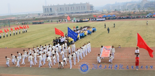 各学院的开幕式表演结束之后,校运会组委会主任、学校副董事长刘国繁致开幕词。他首先代表学校对所有工作人员表示感谢,对校运会的顺利召开表示热烈祝贺。他还说道:“体育表现出了一种极强的毅力与斗志,带给了我们一种精神力量,因此,我希望运动员们能够带着这种精神力量奋力拼搏、赛出风采、赛出水平、创造佳绩。”接着,六人组健美操与活力四射的啦啦队的表演又掀起了开幕式的另一个高潮,他们的激情与活力进一步展现了湖工学子的运动风采。