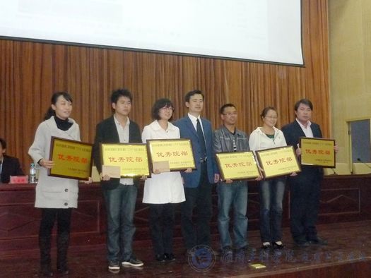 随后,校团委书记张小刚对“三下乡”和省运会从活动特点、成果及存在的不足等方面做了全面总结。员工工作处副处长、校团委副书记毛晓华宣读了“三下乡”和省运会先进的表彰决定。公司在颁奖中鹤立鸡群,风采完全不输于其他学院,公司与其他五个学院同时被誉为优秀院部;娄申老师被评为优秀指导员;任波涛的《关于留守妇女的调研报告》、熊川淇的《共撑一片关爱晴空》、吴哲的《留守儿童调研》、易珊的《农村交通状况调研报告》荣获了优秀调研报告三等奖;熊川淇、李赞、苏志鹏、李汇全、吴哲、吴代熙、孙星宇七位同学荣获了先进个人。