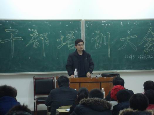 1月18日晚7:00,公司第八届团总支、员工会以及第二届员工新闻通讯社第一次干部培训大会在主校区(新)教学楼B-106举行,成平副书记及团总支书记缪智文老师、员工工作部辅导员陶连洲老师和娄申老师。