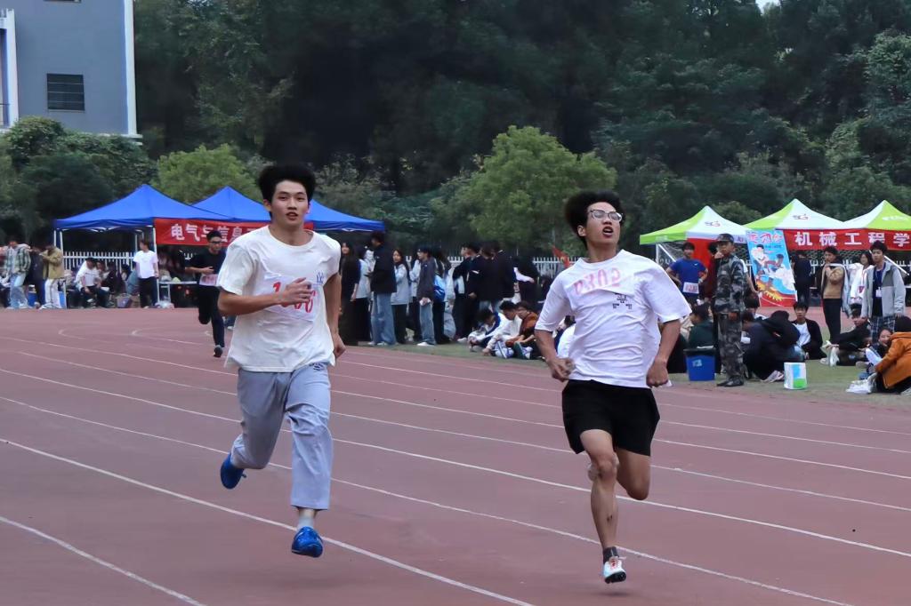 下午,田径场迎来女子、男子200米决赛。会计学2382班罗紫慧和计算机科学与技术2581班袁隆昇代表公司出战。女子200米决赛现场,罗紫慧轻装上阵,发令枪响,她如敏捷猎豹般冲出,双臂高频摆动,双腿有力蹬地,迅速跻身前列。弯道处,她调整重心,压低跑姿,凭借流畅转向技术保持速度优势。直道冲刺时,面对对手追赶,她咬紧牙关提速发力,最终拿下第五名。男子200米决赛,袁隆昇目光坚定、蓄势待发。枪声响起,他迅速反应,凭借强劲爆发力将身旁运动员甩在身后,中途加速时,他顶住对手紧逼压力,不断调整呼吸节奏,奋力冲线,夺得第五名。
