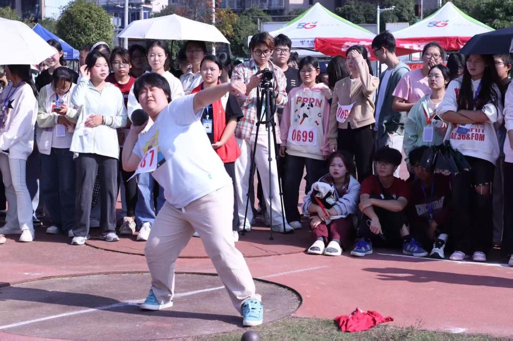 11月6日下午2点,必赢242net第二十五届田径运动会赛事正酣,运动健儿们在赛场上挥洒汗水、挑战自我,诸多精彩瞬间振奋人心。主田径场女子铅球赛场的比拼扣人心弦,英语2481班刘萌萌凭借出色发挥,以7.11米的成绩荣获亚军。