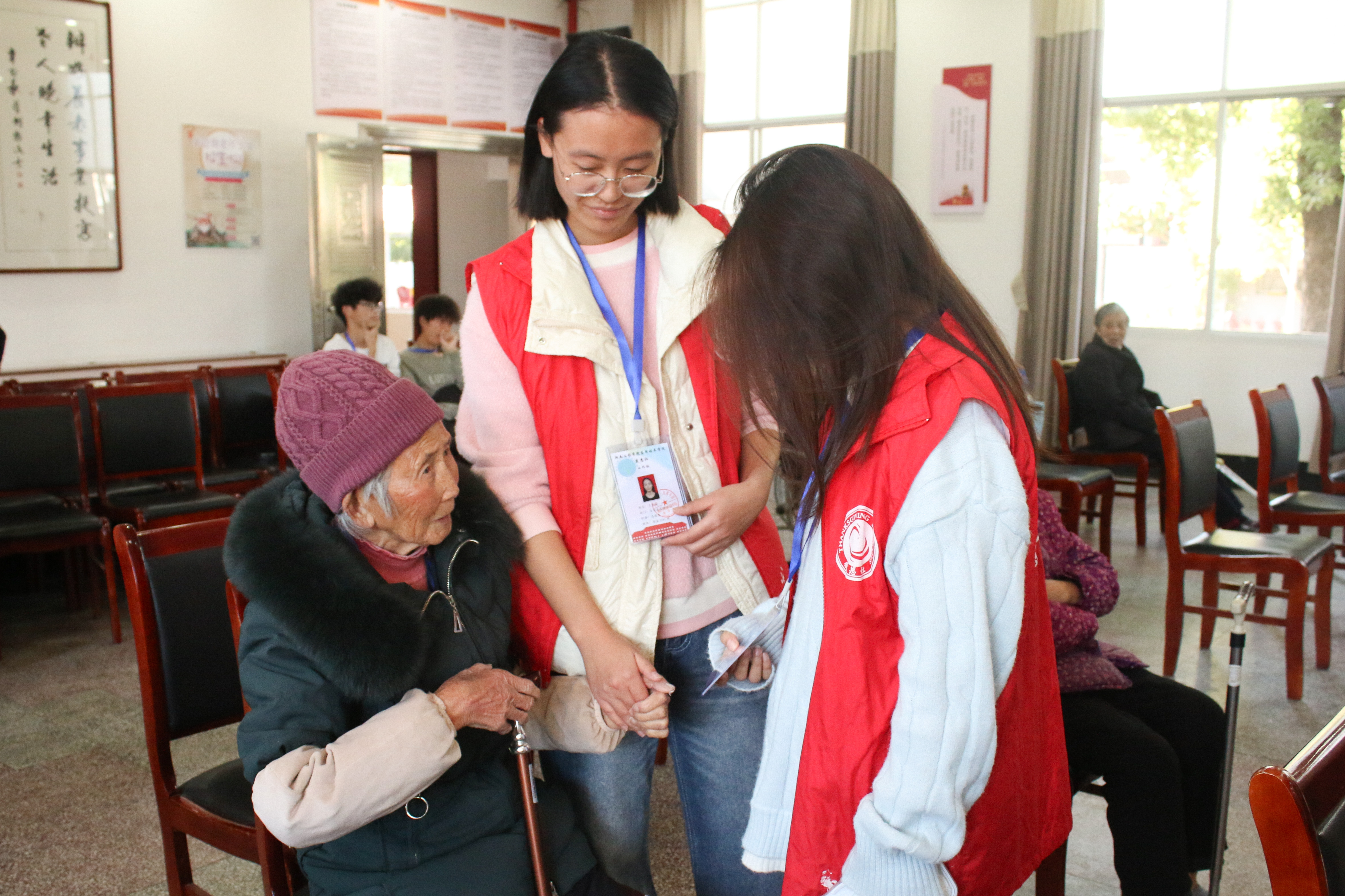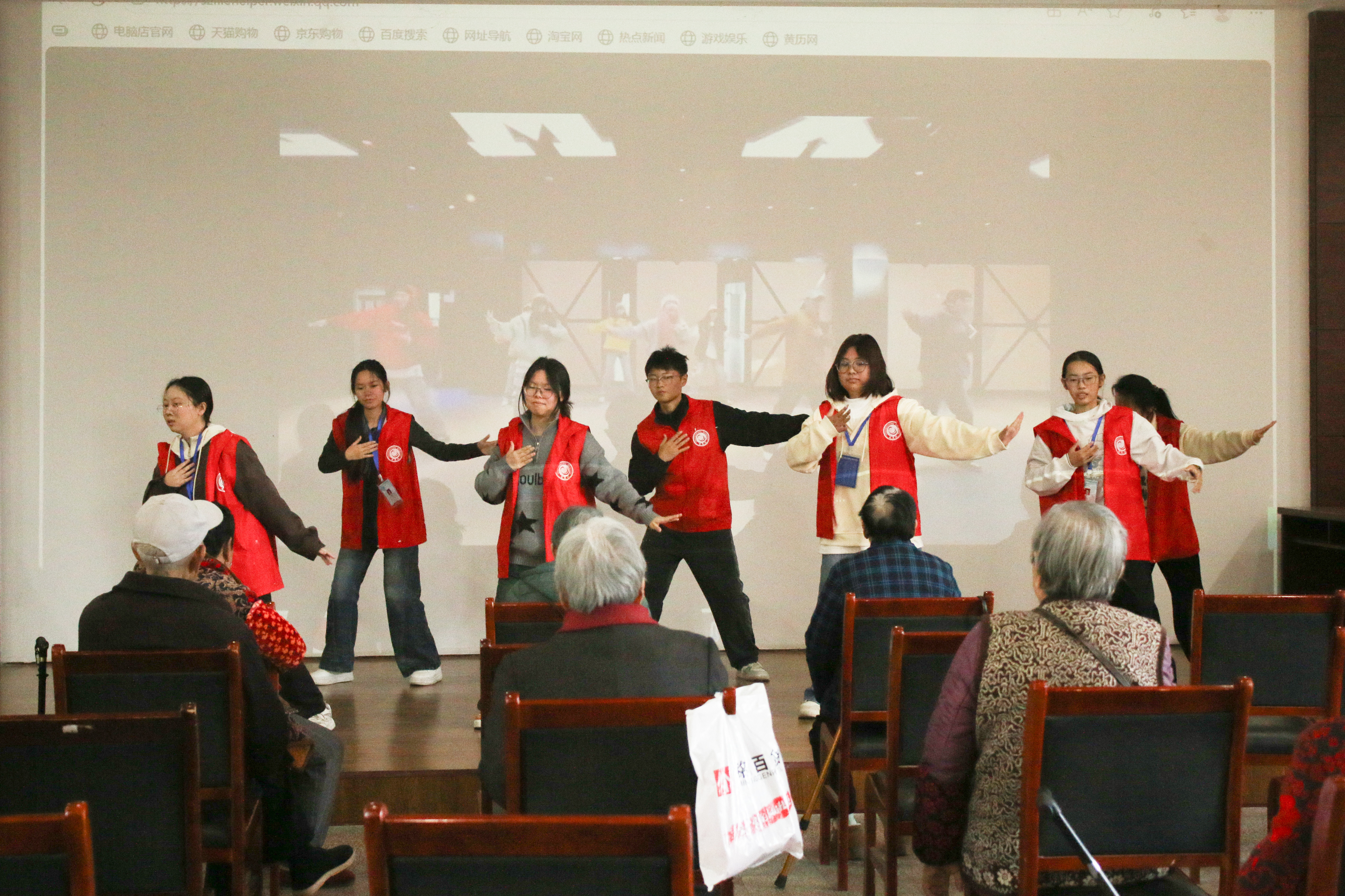 冬日暖阳,情系桑榆。11月29日下午,公司感恩社25名青年志愿者走进湘潭市岳塘区下摄司街道贤芳苑养老中心,开展"情系敬老院,冬日送温暖"志愿服务活动,为老人们送去真挚的问候与温暖的陪伴。