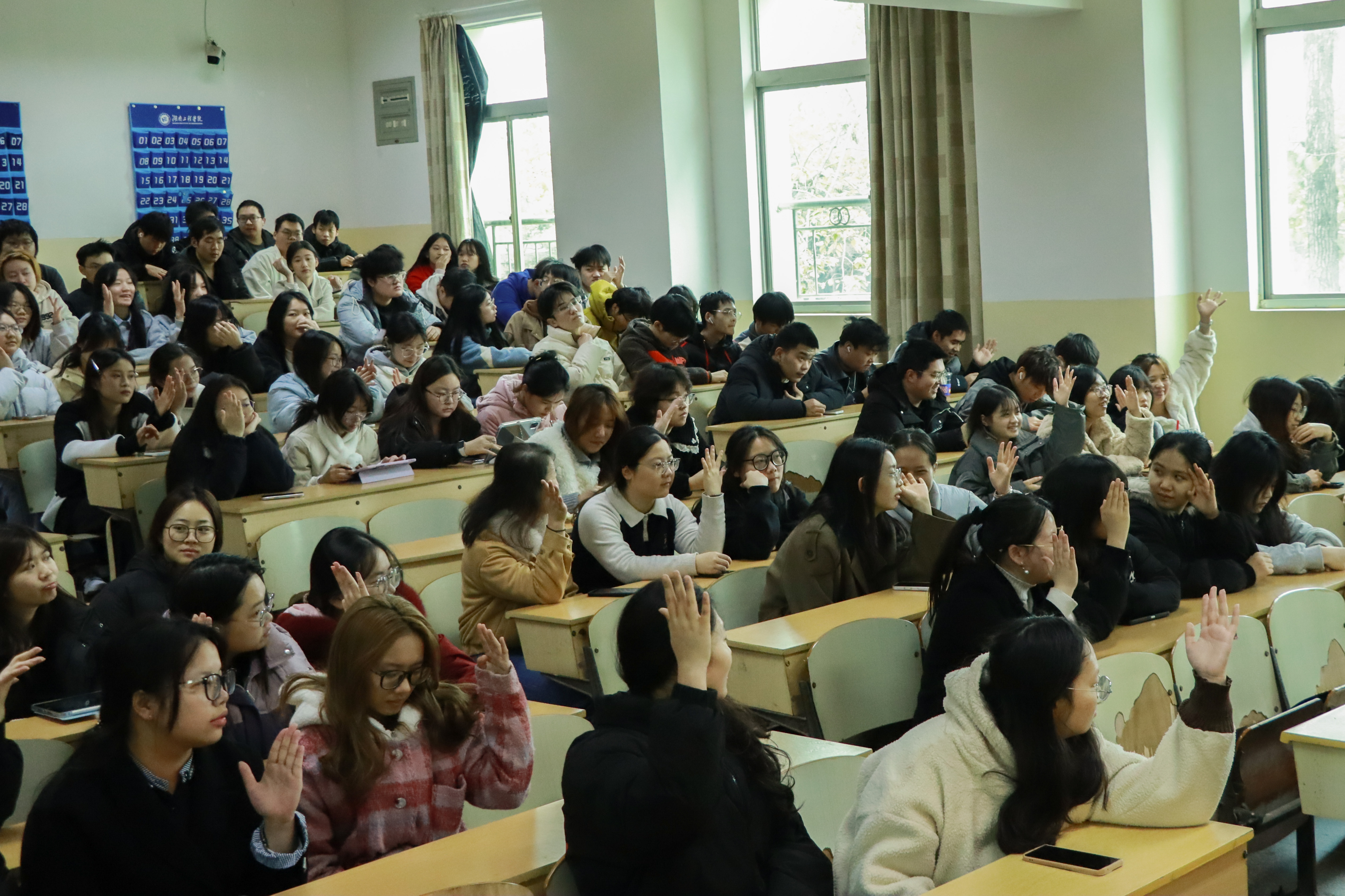 任宁宇结合当下就业形势,解析了2025年全国高校毕业生超1200万的就业压力,从公司专业布局与就业基本情况,分析了不同专业的就业适配度与竞争压力,针对机械、电气、经管等核心专业,指出地产、制造、互联网等行业的岗位收缩现状,重点拆解了应届生进入体制内的8大考试机会,包括国考、湖南省考、湖南烟草专卖局招录、事业单位考试等,详细介绍了各考试的招录时间、报考条件与岗位特点,通过表格直观展示了全国各省公务员收入水平,以及国考各部门的优劣势。同时,任宁宇也对考研赛道的备考规划、专业选择与就业衔接进行了分析,强调双赛道准备能为应届生拓宽发展空间。讲座结束前进行了现场互动,同学们积极参与。