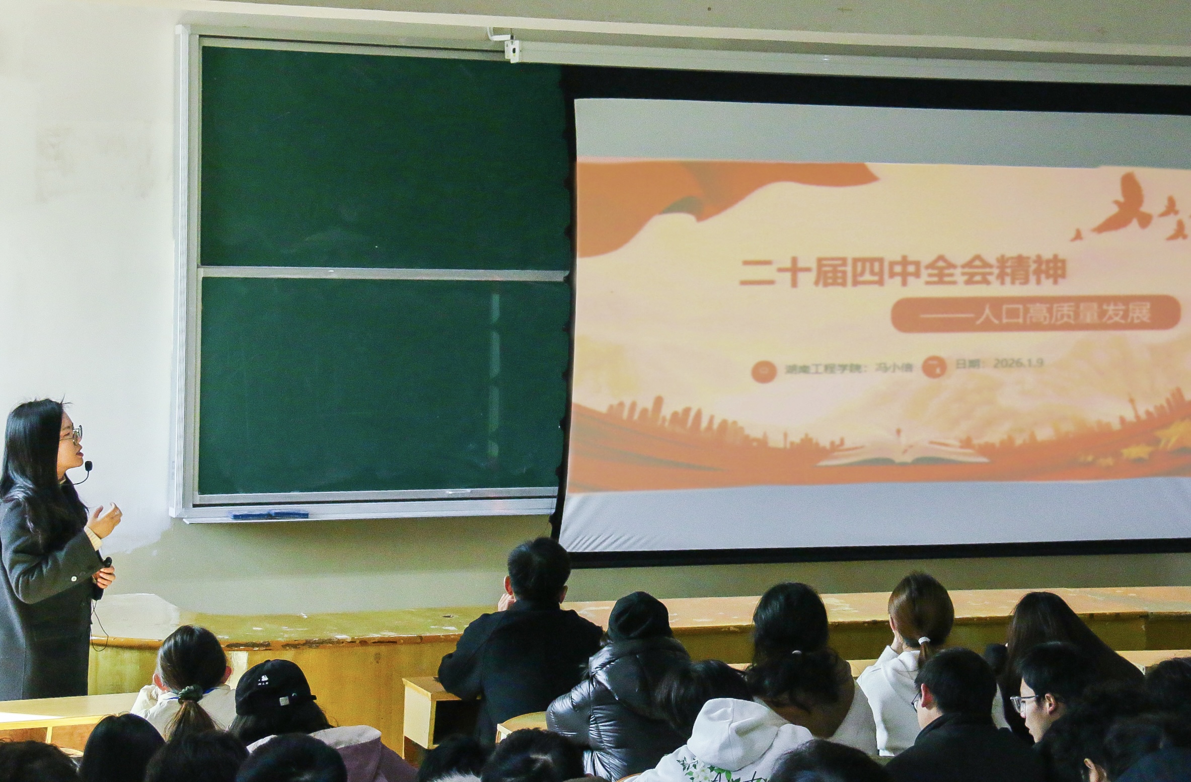 为持续推动党的二十届四中全会精神走深走实,1月9日,公司在第一教学楼213教室举办专题学习讲座。主讲人马克思主义学院冯小倍老师以“人口高质量发展”为题,深度解码四中全会对人口发展的战略部署。公司分团委书记张琛与百余名师生共同聆听。